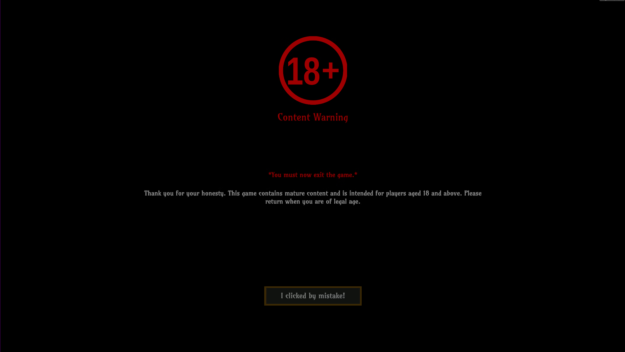 If age is not verified, the player is expected to exit the game.